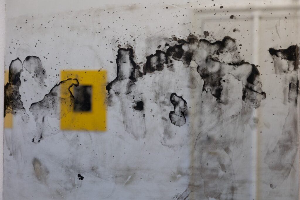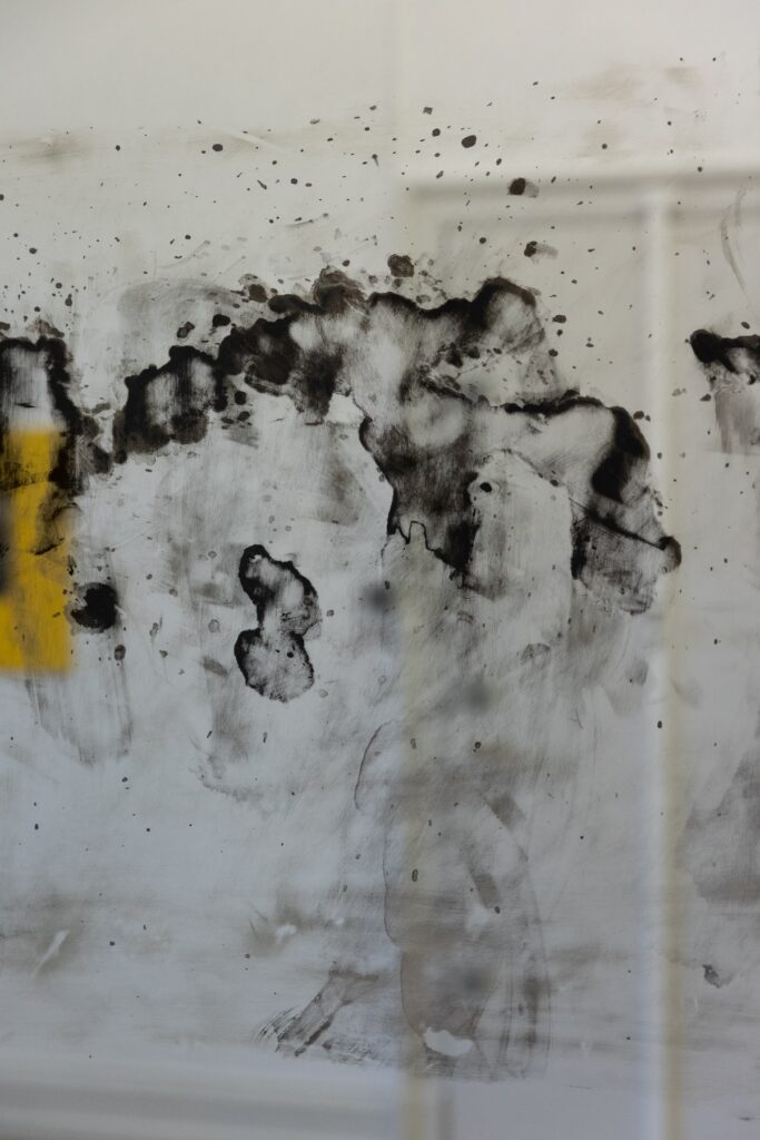 Sink Water Stains shows a manipulated mirror with blind spots. The areas without reflection blur perception and self-image. In front of it stands rigid furniture, covered with a thin, smooth layer of wax that appears dull and distant. Loneliness lies like a greasy film over the moment.